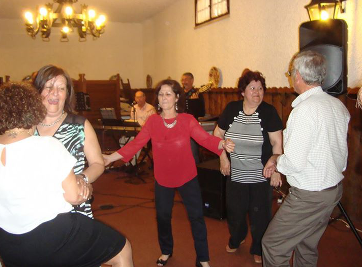 O silêncio manteve-se durante a operação do enchimento das barriguinhas. O vinho e a Sangria caía nos copos e dali para as goelas sedentas. Liberta as vozes, entrou-se na animação, o que é natural quando nos damos bem com o “ Baco “. Viram-se algumas fotos que alguns convivas trouxeram a recordar a nossa infância. A Betty fez um pequenino discurso sobre o encontro e eu transmiti a todos uma mensagem vinda do Brasil de Pindamonhangaba da Mélita que gostaria de estar presente que desejou felicidades e tudo de bom para todos.
